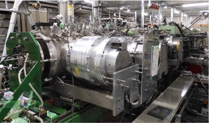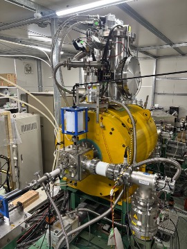 超伝導コイルを用いた高性能ECR(Electron Cyclotron Resonance)イオン源で、18 GHzのマイクロ波を使用して高電荷状態のイオンを効率的に生成します。超伝導磁石により強力で安定した磁場を形成し、軽元素から中・重元素まで幅広いイオン種を高強度で供給することが可能です。