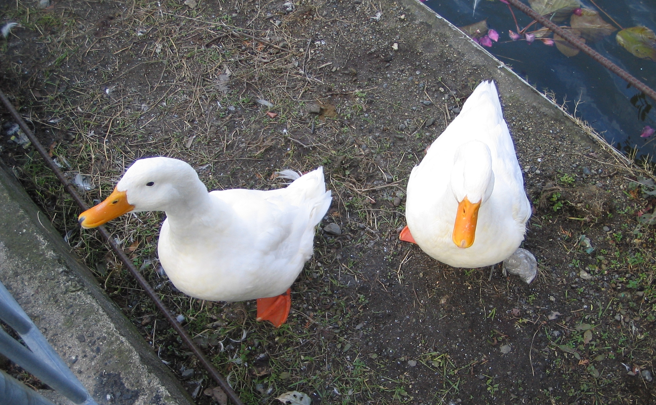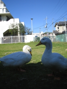 新年のアヒル。空き地に上がれなくなったので狭い空間で暮らしております。