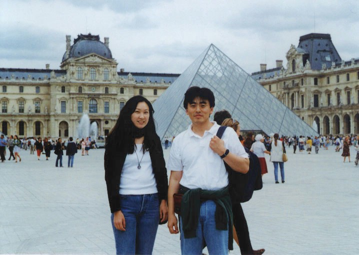 - パリ、ルーブル美術館の前にて。