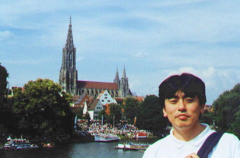 - 世界で最も高いウルムの大聖堂とドナウ川をバックに。(撮影すみよしさん)