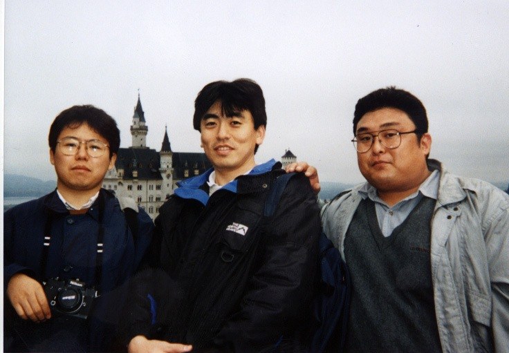 - マリエン橋からノイシュバンシュタイン城を望む mit しげ&かじ(何故か顔が真剣)