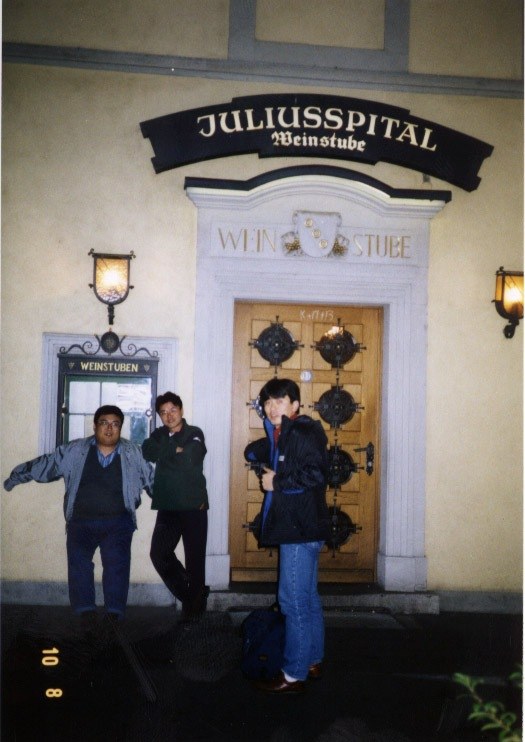 - ウェルツブルグのワインの老舗、ユリウスシュピタールの前にて mit
