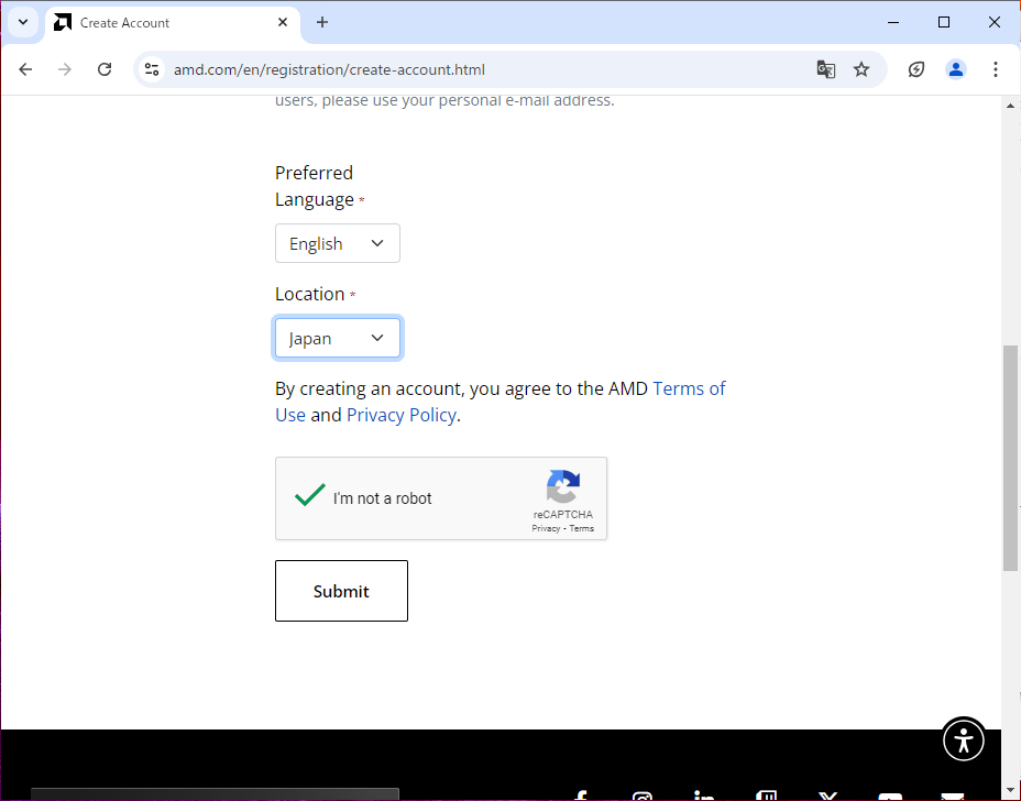2024年10月現在、AMD Xilinx Vivado のインストーラをダウンロード、さらにインストールを行うには AMD Account が必要である。このページでは、AMD Account の作成手順を記述する。
