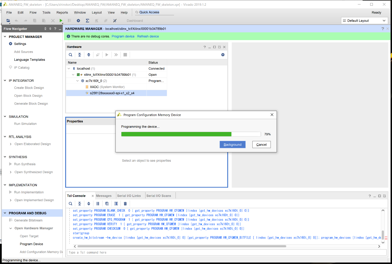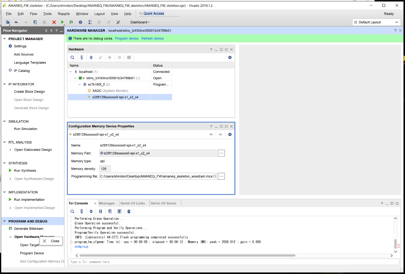 mcs ファイルを JTAG 経由で AMANEQ 本体に書き込む