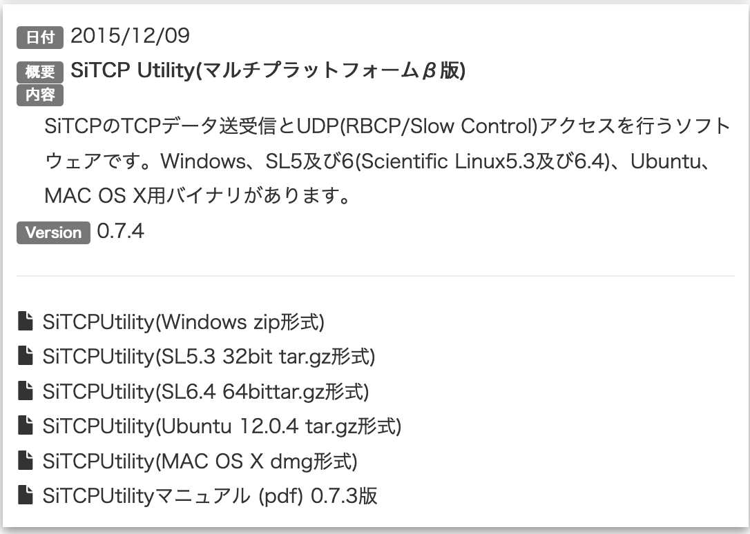 まず、MFC Writter と SiTCP Utility を Bee Beans Technology のウェブサイト(以下)からダウンロードし、インストール。