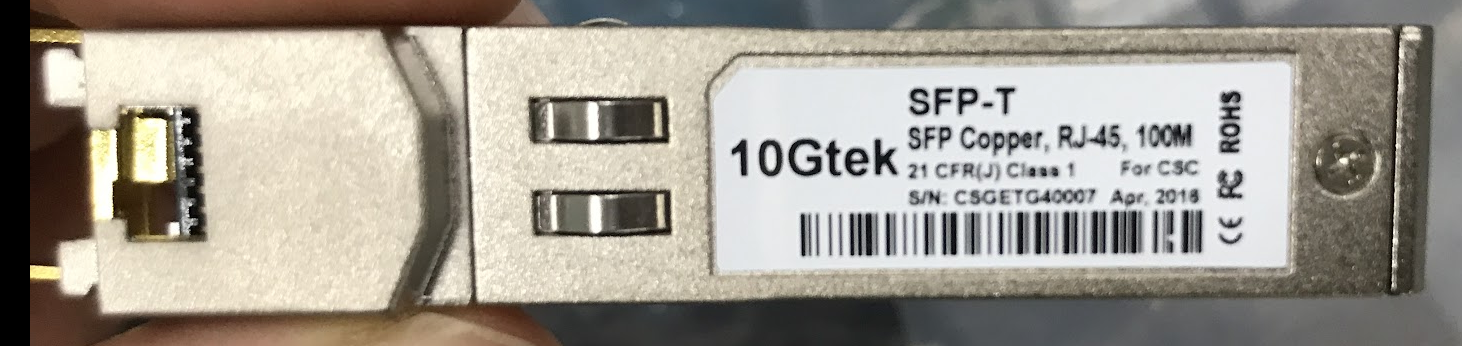PC (MacBook Pro, 13-inch, 2020, Four Thunderbolt 3 ports)とAMANEQをメタルのLANケーブルで繋いだ。 SFP-RJ45の変換として、10Gtek の SFP-T SFP Copper, RJ45, 100Mを噛ませた。さらに、LANケーブルと USB-type C の変換を噛ませ、MacBook Pro に繋いだ。SFPのポートは写真のように、SFP1 を用いる。