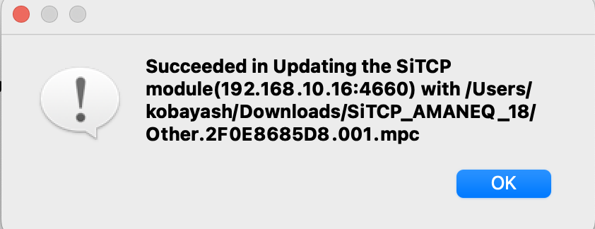 作業した環境は、macOS Monterey Version 12.3.1 であり、MPC Writter (MAC OS X dmg形式) と SiTCP Utility (MAC OS X dmg形式) をダウンロードした。Windowsでもおそらく同じような作業になるはず。固定IPアドレスの振り方は、Windows だとやり方が若干異なるため、Googleで調べる。SiTCP-XG 用の MPCX ファイルを書き込むには、最新の SiTCP/SiTCP-XG 用 MPC ファイル書き込みツールが必要なので注意。さらに、これは macOS に対応していない。
