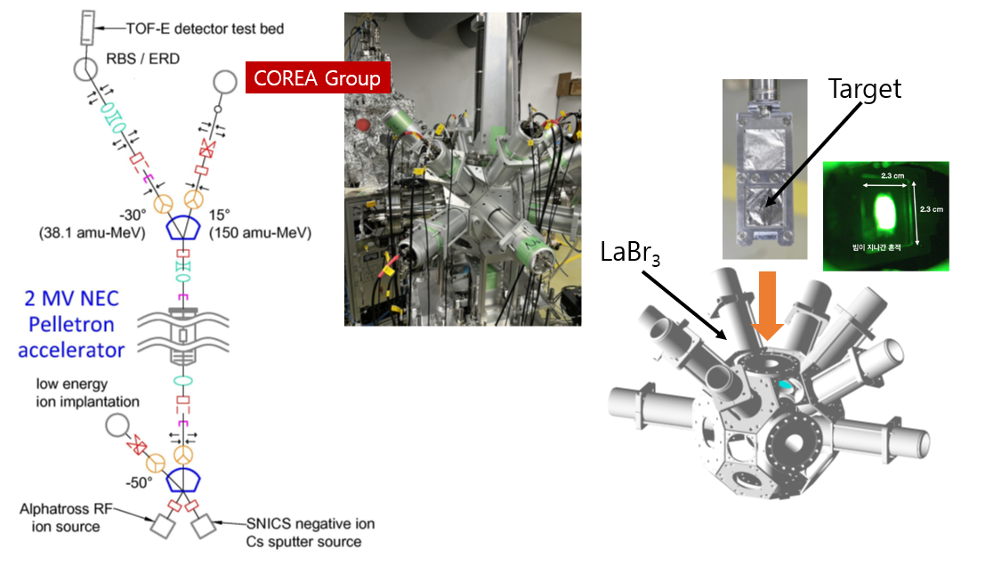 KISTタンデム加速器施設には、HVE社製の6 MV TandetronとNEC社製の2 MV Pelletronが設置されており、そのうちの1台の2 MV Pelletronのビームラインに高麗大学の検出器システムが設置されている。